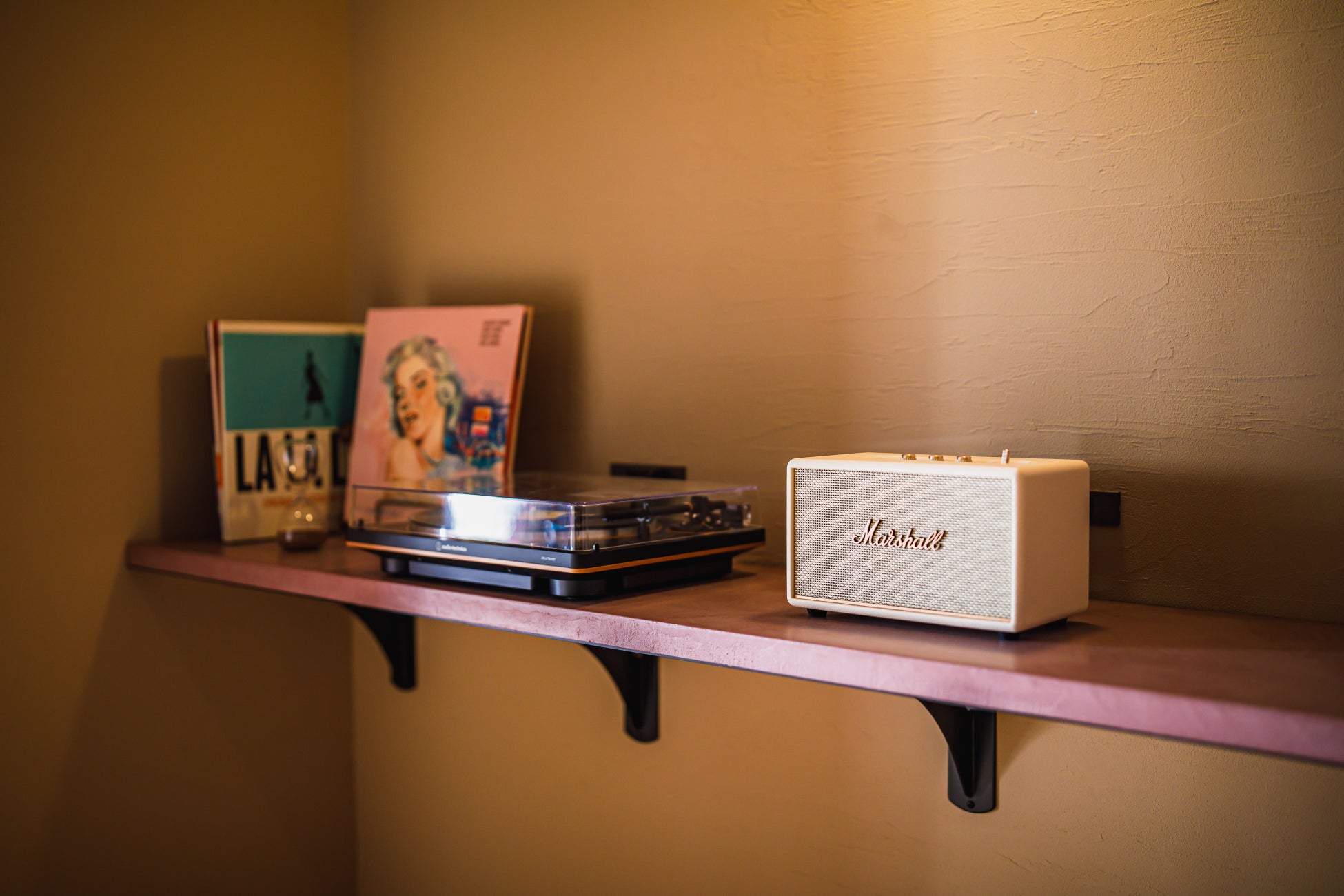 ・レコードの音色が流れるラウンジでのリラックスタイム