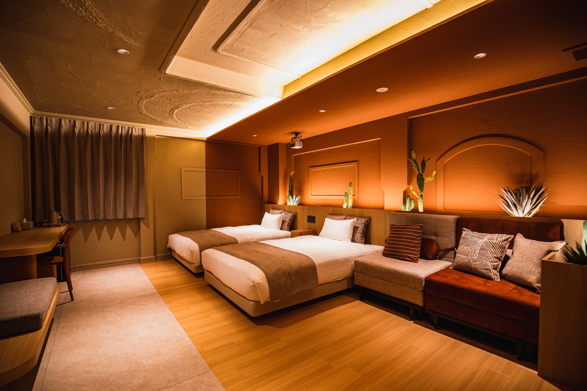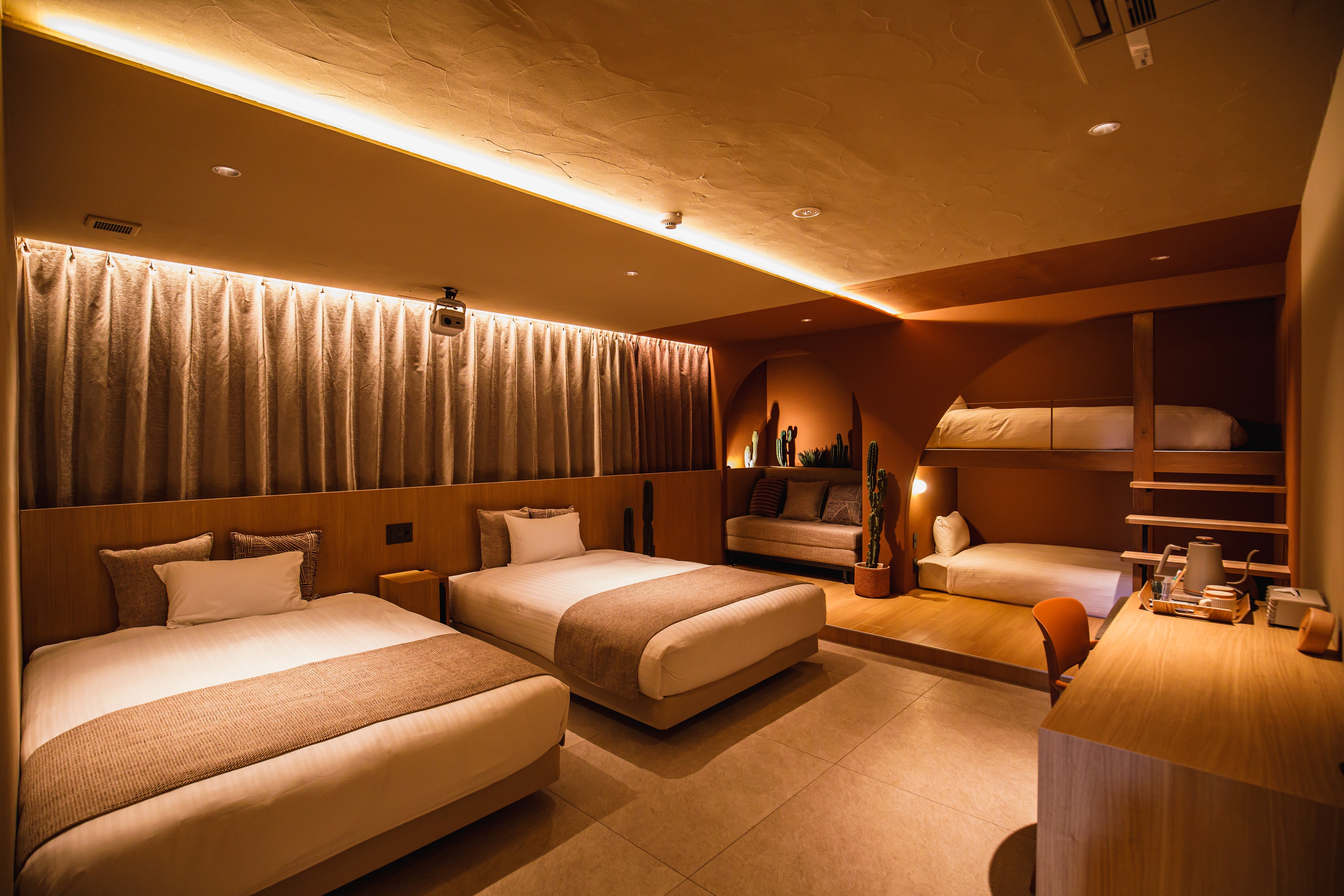 本ホテルの客室は、「砂の映画館」をコンセプトにした内装で統一されています。映画の世界観に浸ったあとも、静かで心ほどける時間が続くよう設計されており、非日常の余韻をそのまま滞在体験へとつなげます。