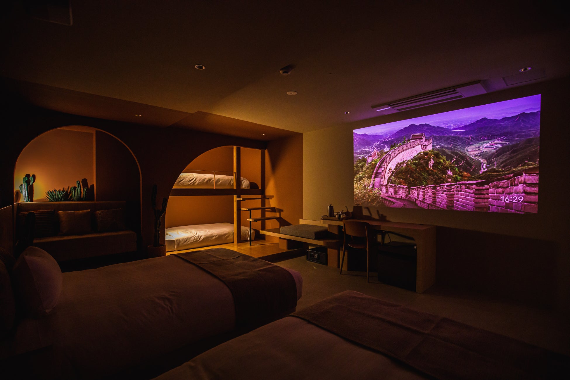 ※情報初出時に『プロジェクター投影サイズ全室100インチ』と記載しておりましたが、客室により投影サイズは異なります。訂正してお詫び申し上げます。