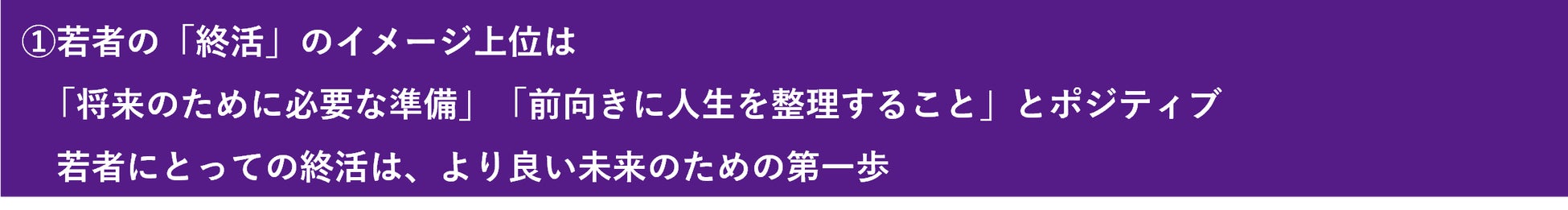 今回の調査では、若者向けの終活をテーマとしたドラマや、カジュアルな終活イベント増加の背景には、20~30代の終活に対するイメージについて、「将来のための必要な準備」「前向きに人生を整理すること」が上位に挙がるなど、ポジティブなものであることが影響していると推察される結果となりました。