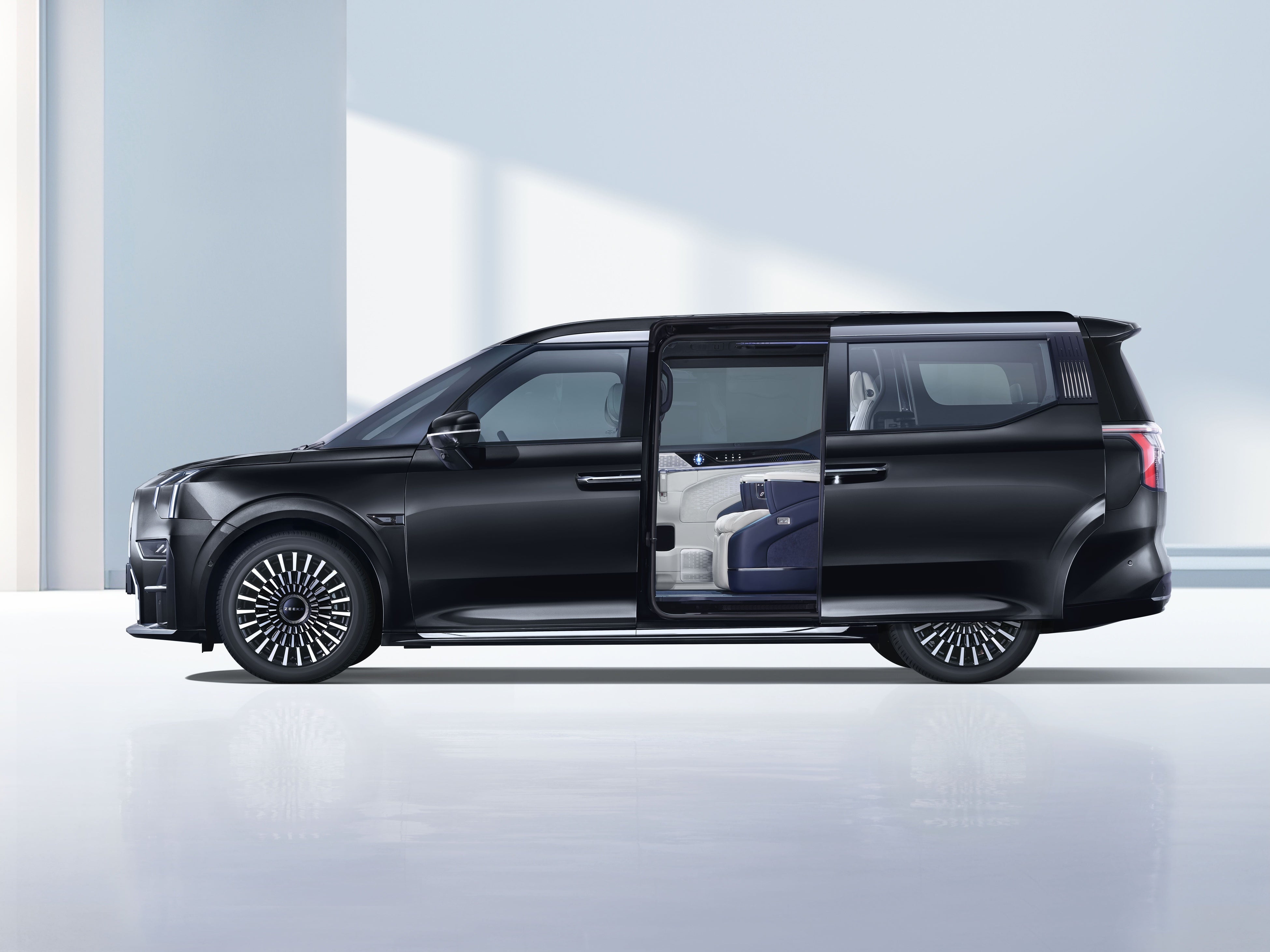 デザインは、元アウディのステファン・シーラフ率いるスウェーデンの「Zeekr Global Design Center(ジーカー・グローバル・デザインセンター)」が手がけ、洗練された北欧の流れを汲んだ車両に仕上げています。大型MPVでありながらCd値0.27という優れた空力性能を実現。存在感を放つ縦型フィン構造の大型フロントグリルや、1.47mに及ぶ一体型テールライトバーなど、プレミアムカーとしての風格と先進性を両立しています。