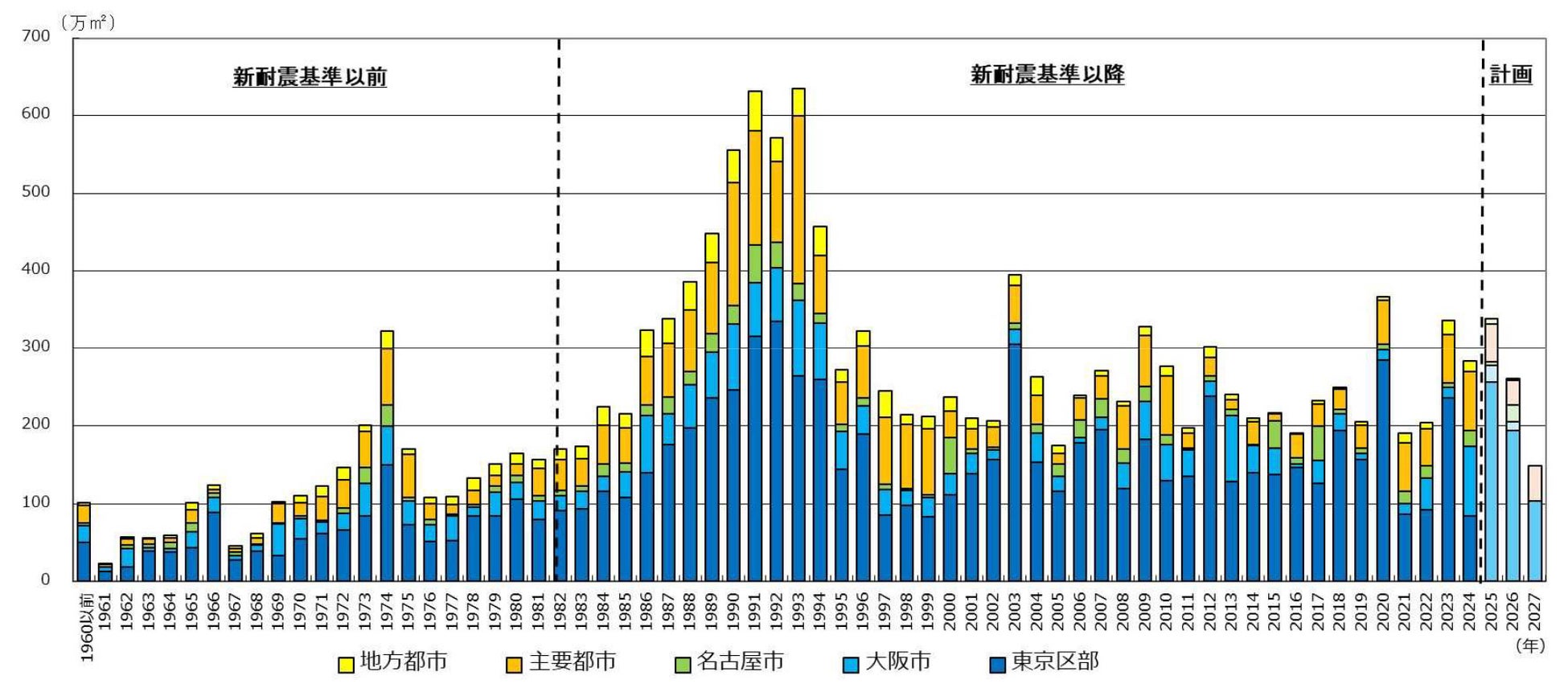 昨今の急激な建築工事費・労務費の上昇の一方で、オフィス賃料については殆ど上昇しておらず、不動産投資目線的には新築ビルでは収益性が成立しない時代となってきています。