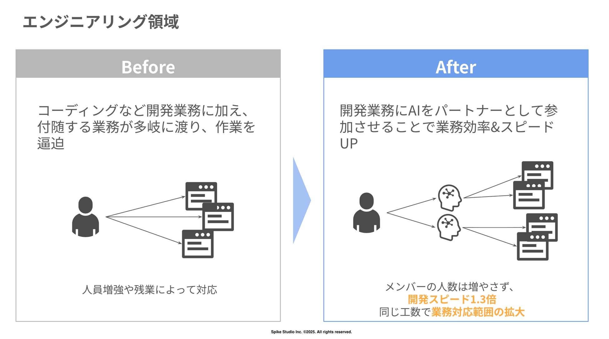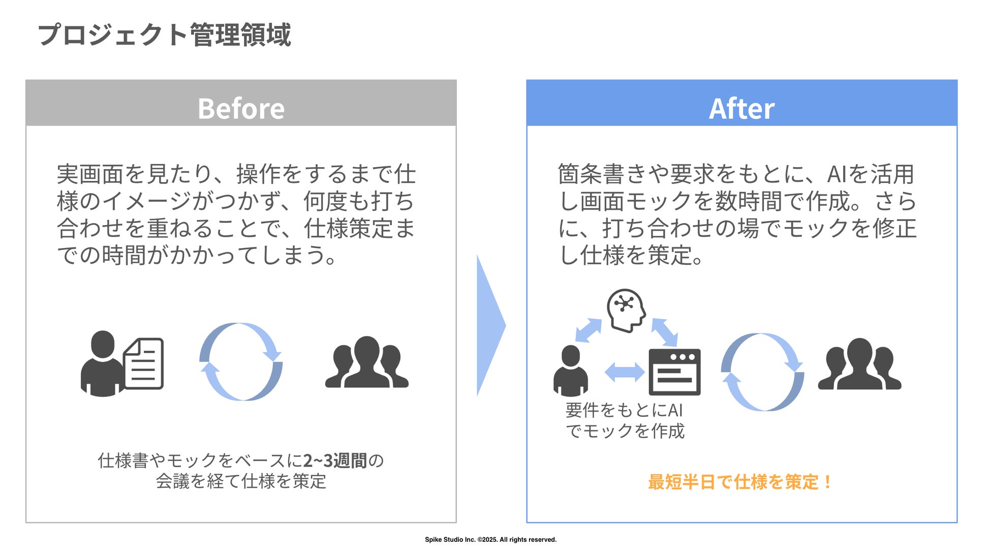 スパイクスタジオは今後も、AIを前提とした開発手法を標準化し、さらなる自動化・高速化を推進していきます。また、AIエージェントを導入し、日本企業全体の生産性の底上げに寄与してまいります。