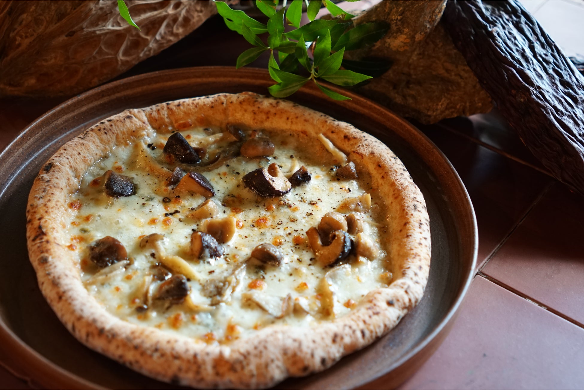 香り豊かな信州産きのこと、塩味とコクのバランスが絶妙な4種のチーズを合わせた、満足感のある濃厚ピザ。
