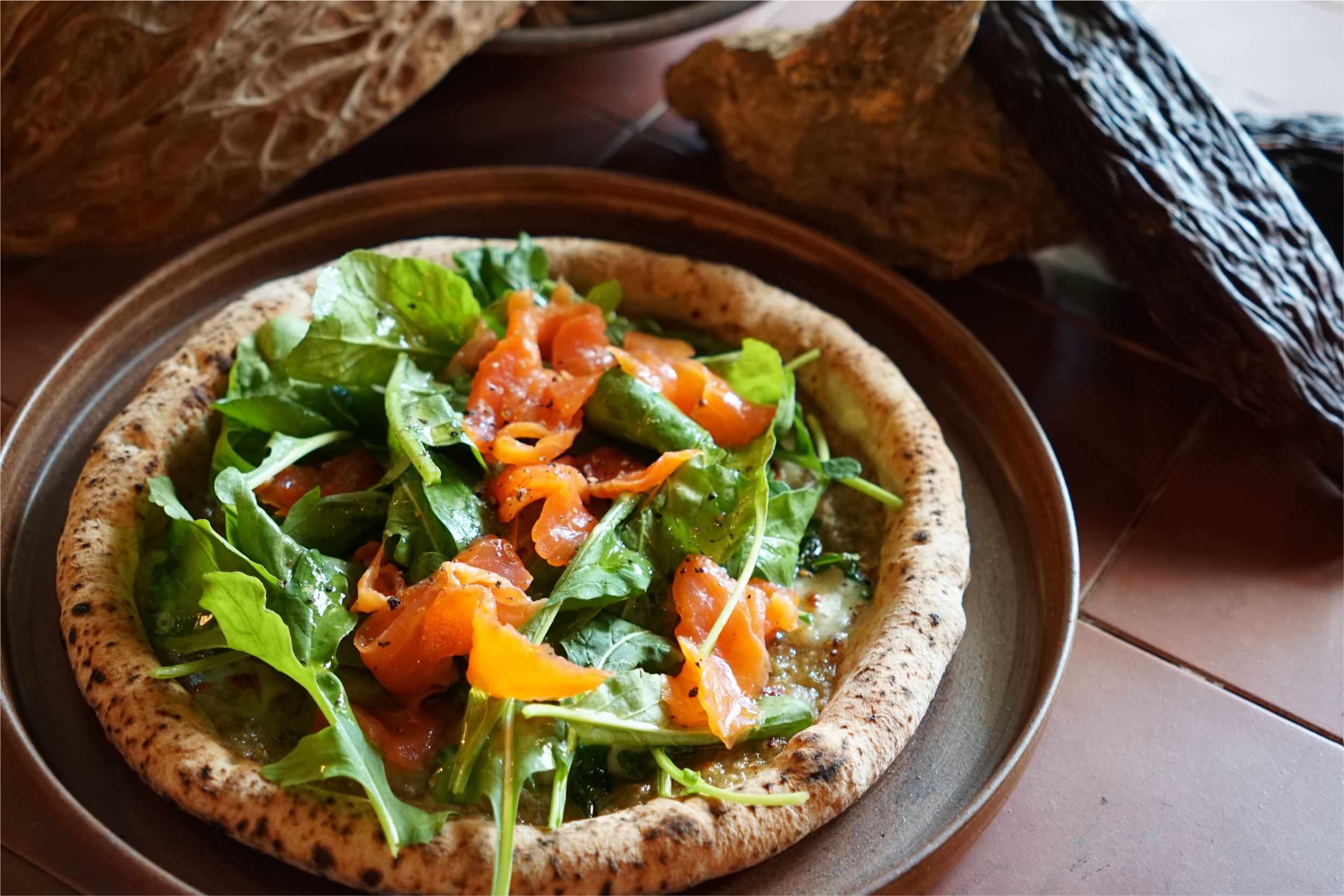 しっとりと旨味のある信州サーモンを、燻製モッツァレラの深い香りが引き立てる、上質な組み合わせ。