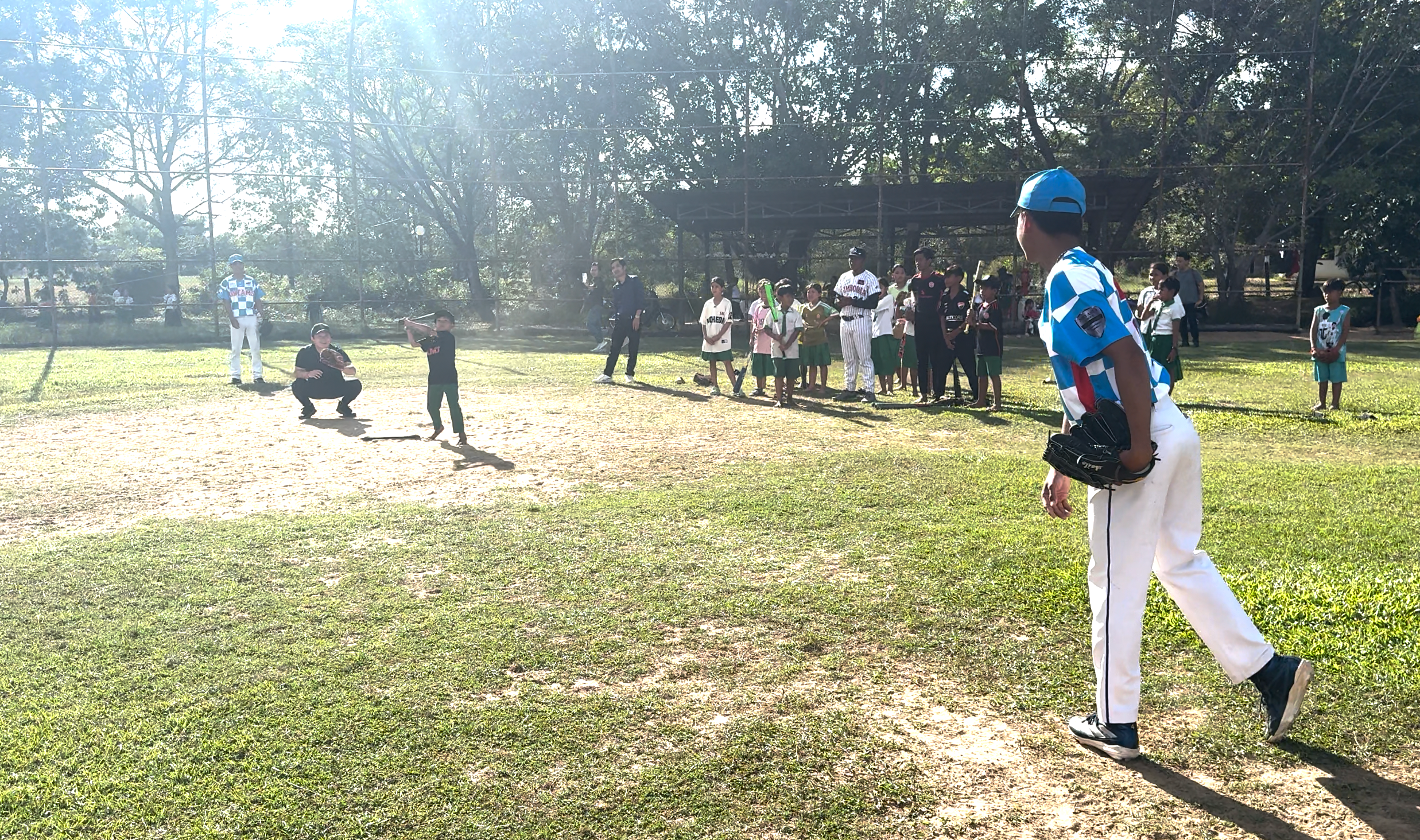 ドリームズ所属のネトラ選手、ソクニム選手も子どもたちの輪に加わり、野球指導を通じて、