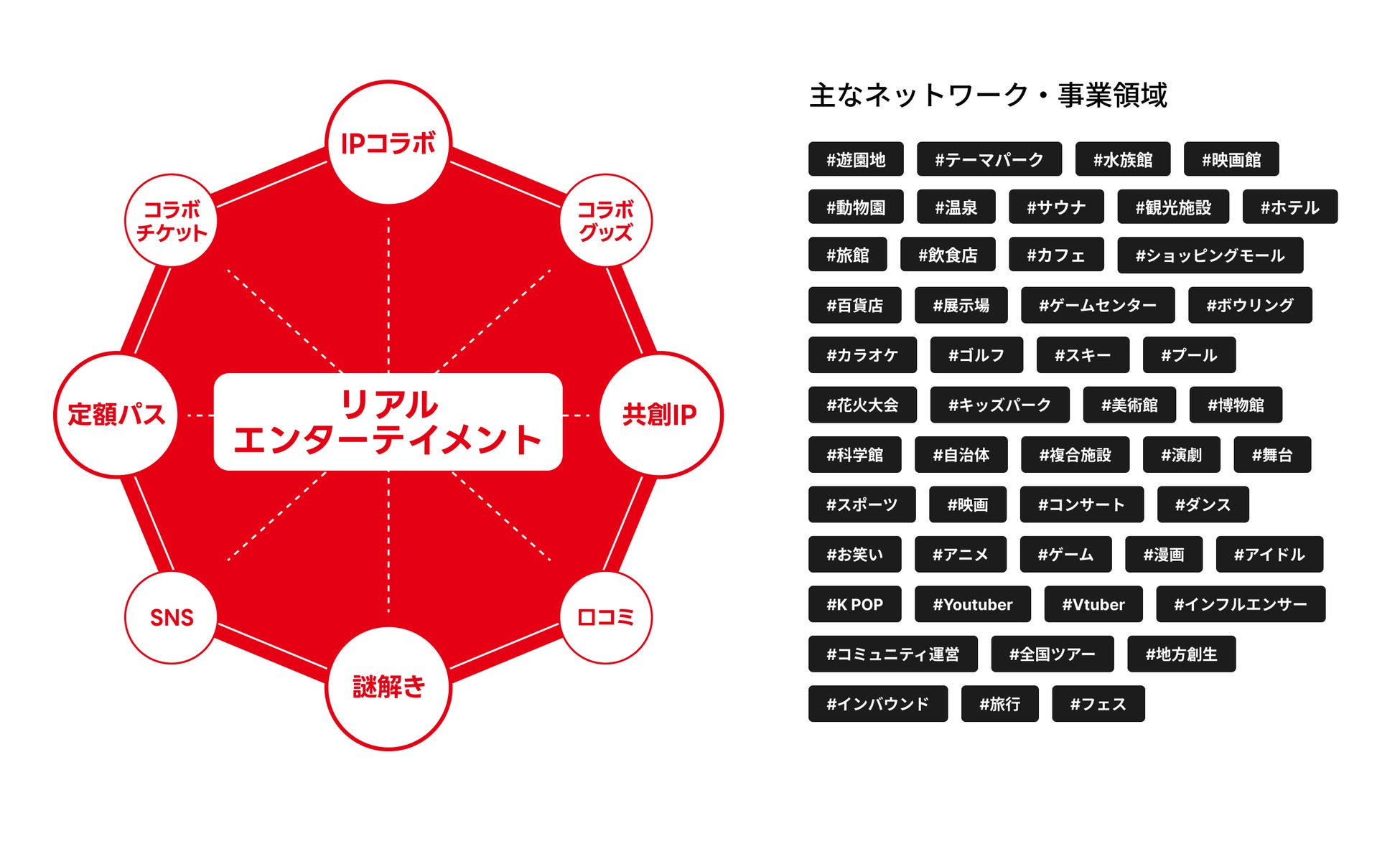 事業内容:記憶に残る非日常を創るエンタメ総合商社。施設への集客支援SaaS開発・運営 、外部企業と提携したパスシリーズの展開、IP活用プロデュース事業などを展開。