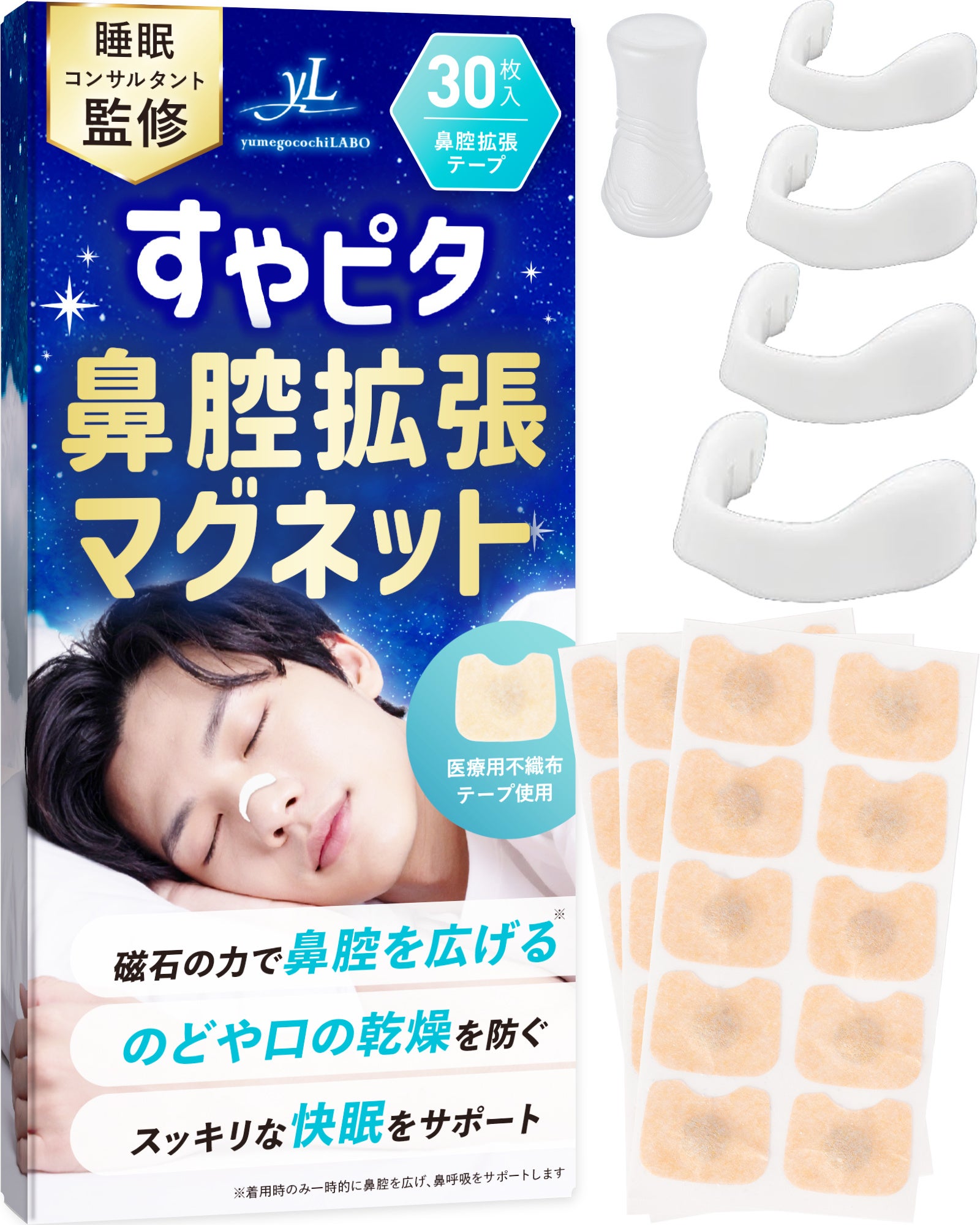 こうした問題に対応するため、ペガサスブランディング株式会社(本社:東京都港区、代表取締役:神田健太朗)は、睡眠の専門家監修のもと、「すやピタ鼻腔拡張マグネット」2種を開発。11月1日より発売開始いたします。