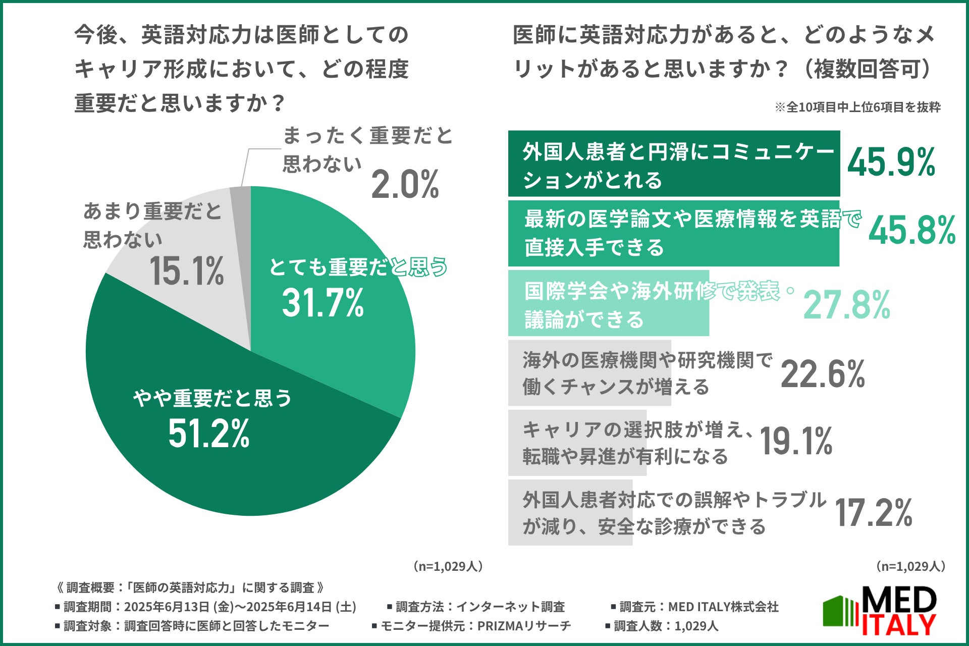 MED ITALY株式会社(所在地:東京都港区、代表:近藤 晋一郎)は、「医師の英語対応力」に関する調査を行いました。