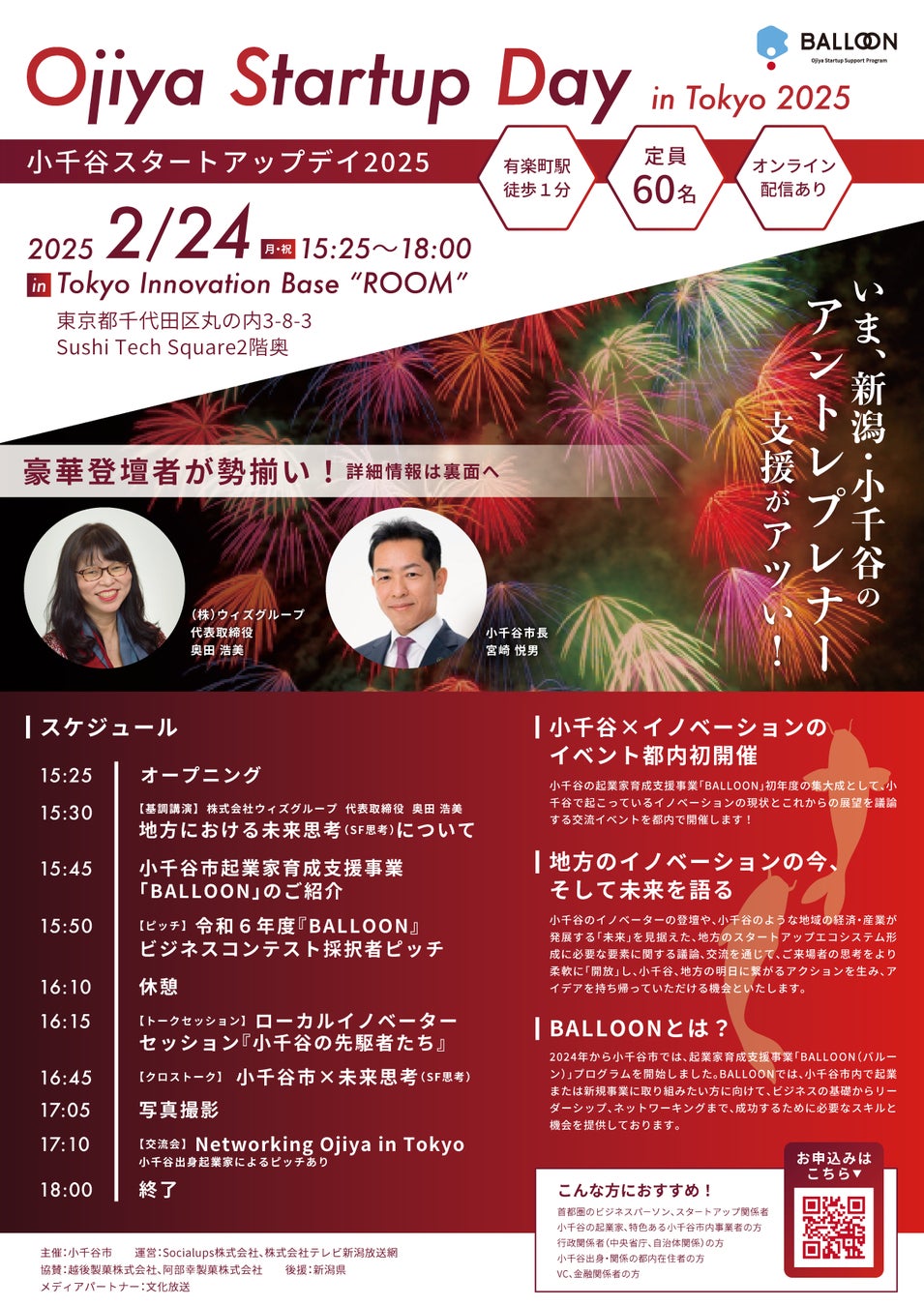 【新潟県小千谷市】起業家育成支援イベント「Ojiya Startup Day 2025」2/24 都内で初開催!