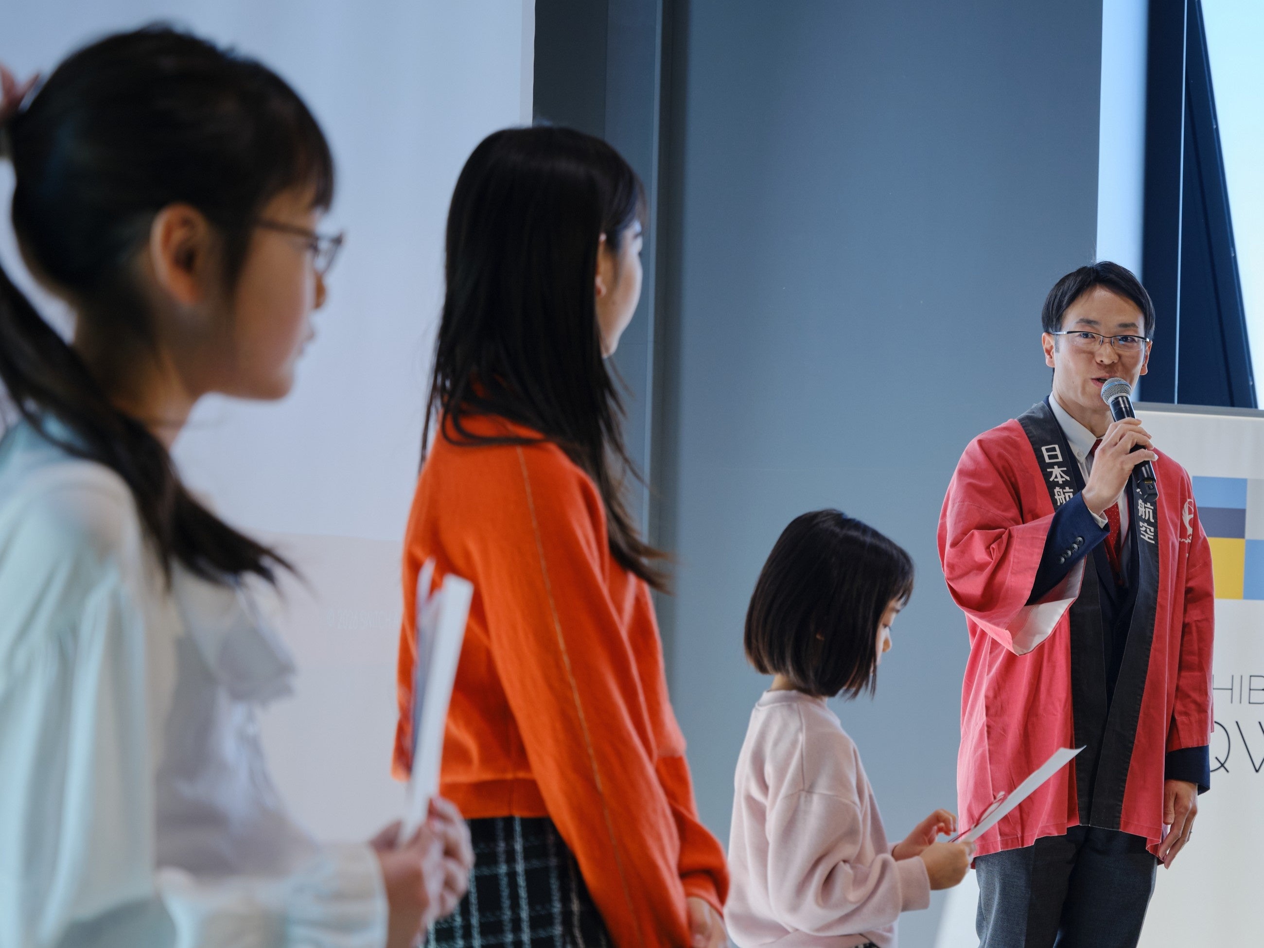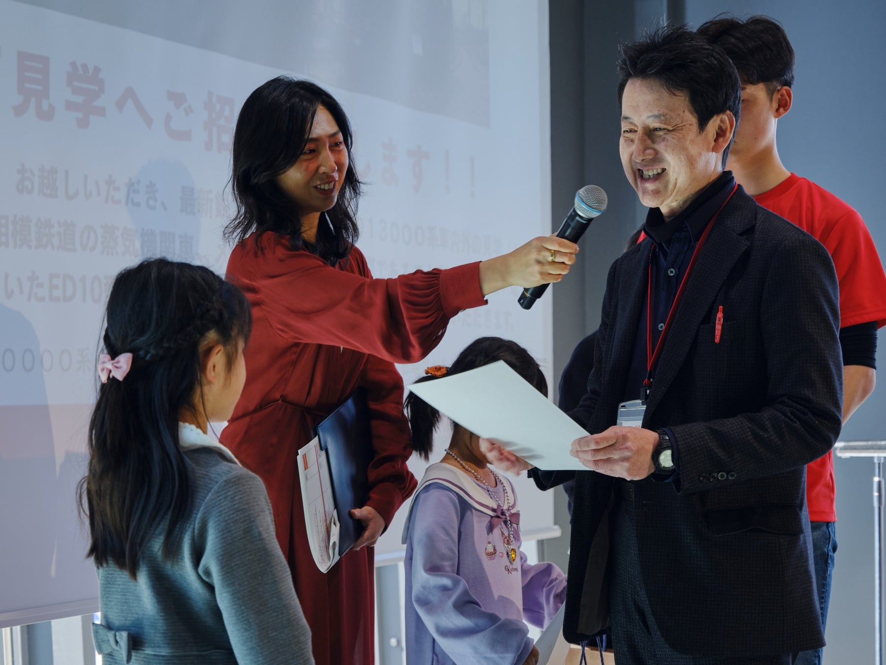2026年3月8日(日)の表彰式には受賞した子どもたちとその保護者、ミッションを提供した企業・団体関係者など約200名が集まり、表彰と交流会が行われました。当日は東急線キャラクター「のるるん」と相模鉄道キャラクター「そうにゃん」も登場し、受賞した子どもたちをお祝い。会場は大きな拍手と笑顔に包まれました。表彰では、企業・団体が提供した17の「ミッション賞」と、応募作品全体から選ばれた5つの「全体賞(審査委員賞)」が発表され受賞者を祝福しました。