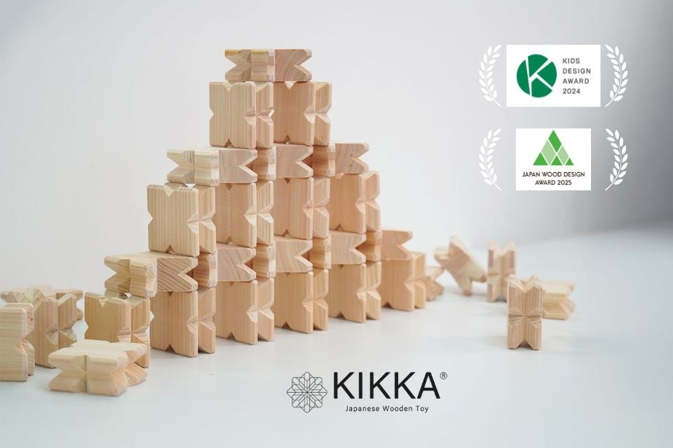 KIKKAは2024年6月に販売を開始しました。素材には、日本有数の林業地として知られる奈良県吉野町の銘木「吉野桧」を使用しています。子どもたちが手にするものだからこそ、安心できる素材と、長く使い続けられる品質にこだわりました。発売後は、素材の産地である奈良県吉野町での体験会をはじめ、各地の子育てイベントなどに積極的に参加し、実際に子どもたちが遊ぶ姿や保護者の声を直接聞ける機会を大切にしてきました。そうした取り組みのなかで、「第18回キッズデザイン賞」(2024)を受賞。さらに、「ウッドデザイン賞2025」(2025)も受賞するなど、その価値と取り組みが高く評価されました。