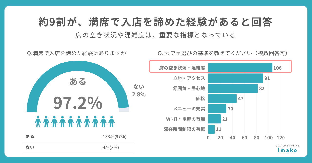 カフェ利用者の**97%**が満席で入店を諦めた経験がある