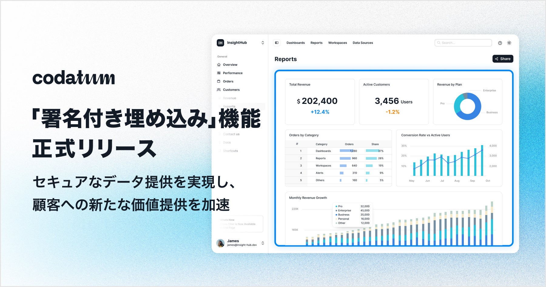 Codatumが「署名付き埋め込み」機能を正式リリース。セキュアなデータ提供を実現し、顧客への新たな価値提供を加速