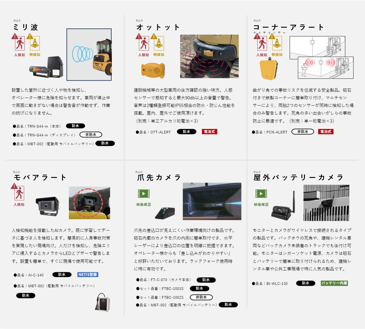 を共通コンセプトとし、レンタル運用を妨げずに安全性と付加価値を向上できる製品群 を集約しています。