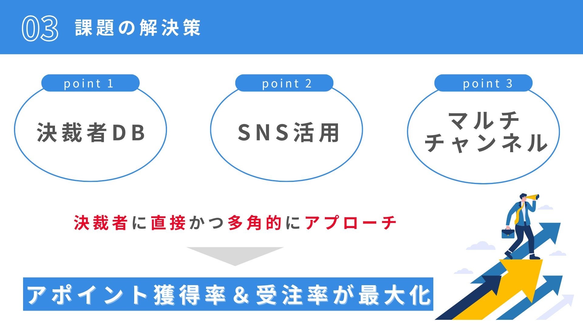 これからアポイントの数を増やしたい方、営業代行会社への依頼を検討されている方、営業代行会社に依頼して失敗した方、受注率や決裁者へのアプローチでお困りの営業責任者は必見です。