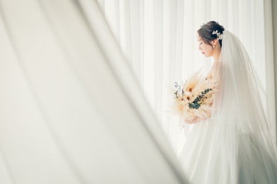 ①1日2組限定 撮影は完全予約制のウェディングフォトスタジオ。 アンティークな家具と、ドライフラワーに囲まれた貸切のスタジオと広島市中心部、リバーサイドを望むロケーション撮影。 お二人だけの特別な空間を演出が可能。