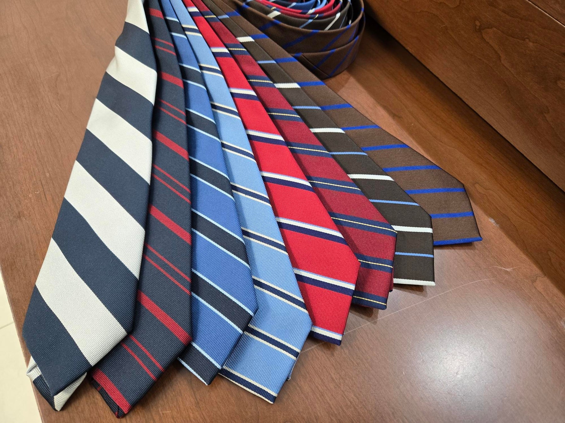 今回のポップアップの為に特別に作成したネクタイ。右肩から左に向けてストライプが落ちるアメリカ様式になっており、ブリティッシュスタイルを基礎としているマリネッラにおいては非常にめずらしいタイになっています。