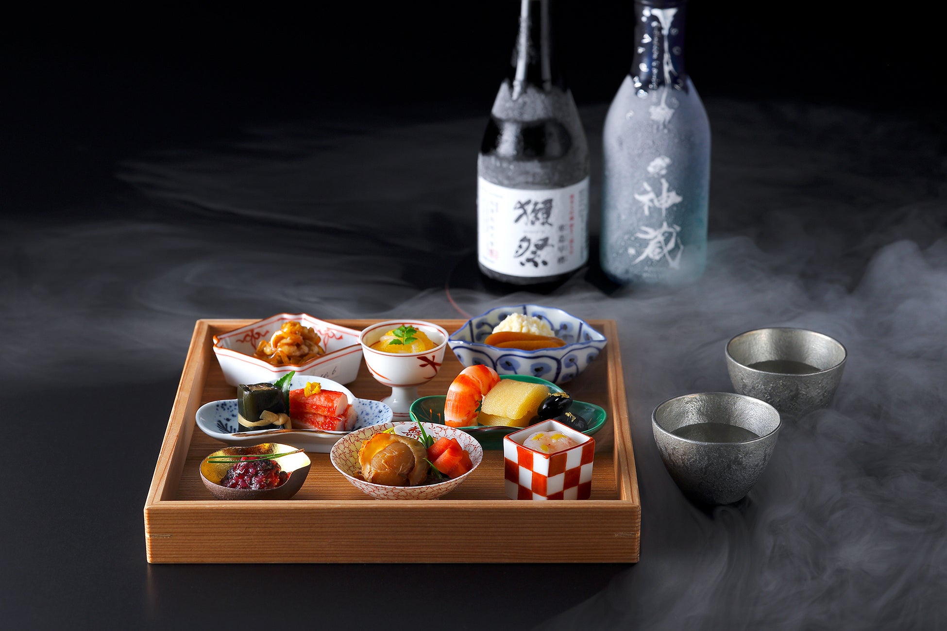 「下鴨茶寮 冷凍おせち」は、京料理の伝統と美意識をそのままに、急速冷凍技術によって繊細な味わいを閉じ込めた逸品です。全国どこでもお召し上がりいただけるおせちとして、毎年ご好評をいただいております。今回、同じく「瞬間凍結技術」を用いて生酒の新鮮さを封じ込める“凍眠生酒”とタッグを組み、冷凍でしか実現できない“おせちと生酒のマリアージュ”をお届けします。