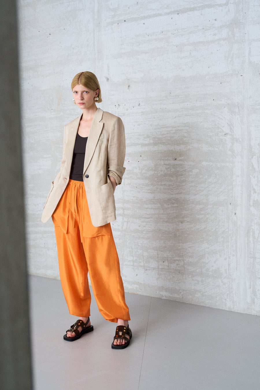 クリエイティブディレクターのフェデリカ・モラは、Max MaraやCERRUTIでの経験を経て2010年にTELAを設立。マニッシュなテーラリング技術とリラックステーラリングを融合させ、女性のためのコンテンポラリーファッションを提案し続けている。