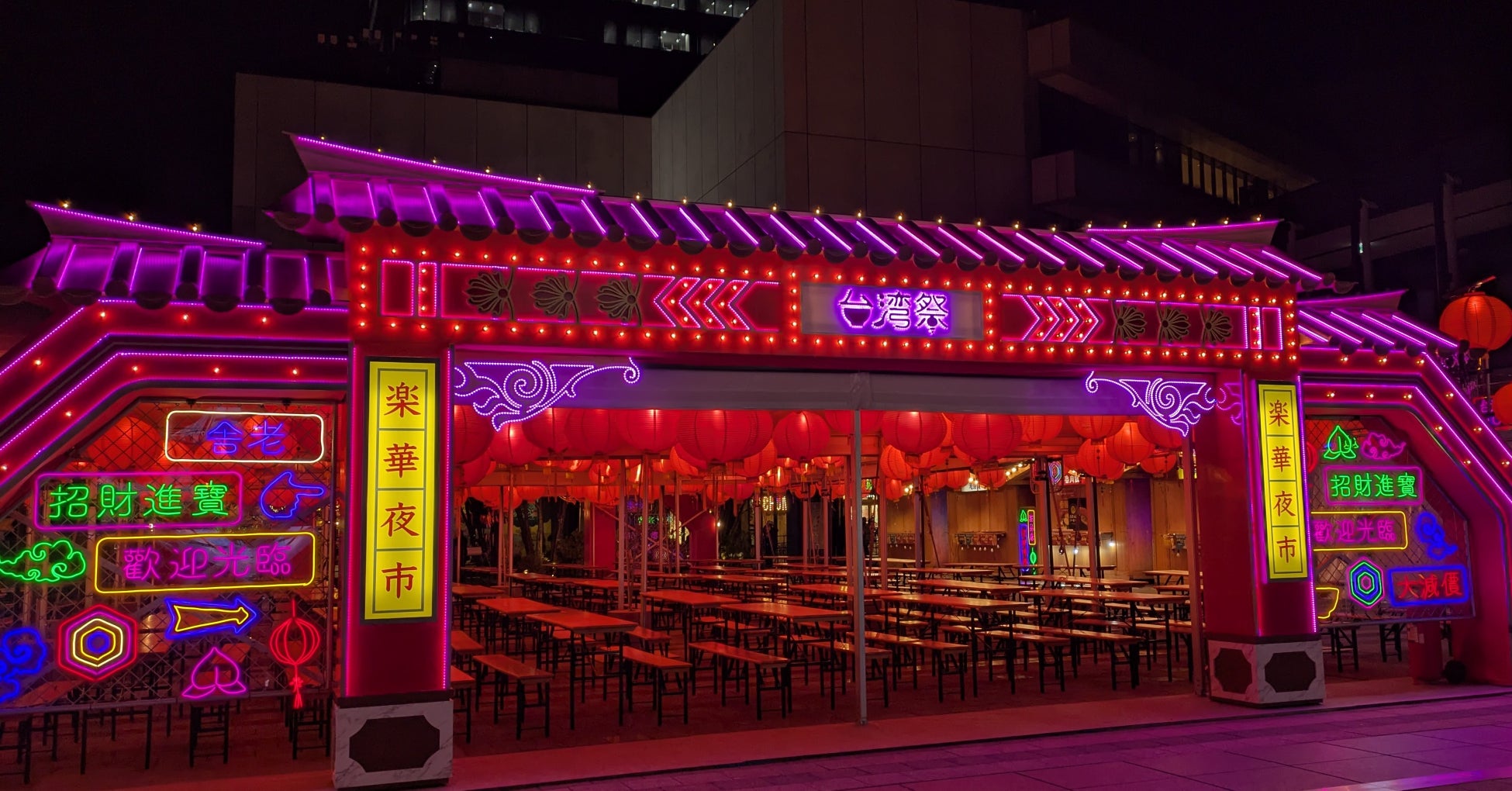 今回の台湾祭では夜市文化に欠かせないネオンの演出でみなさまを台湾旅行へ誘(いざな)います。