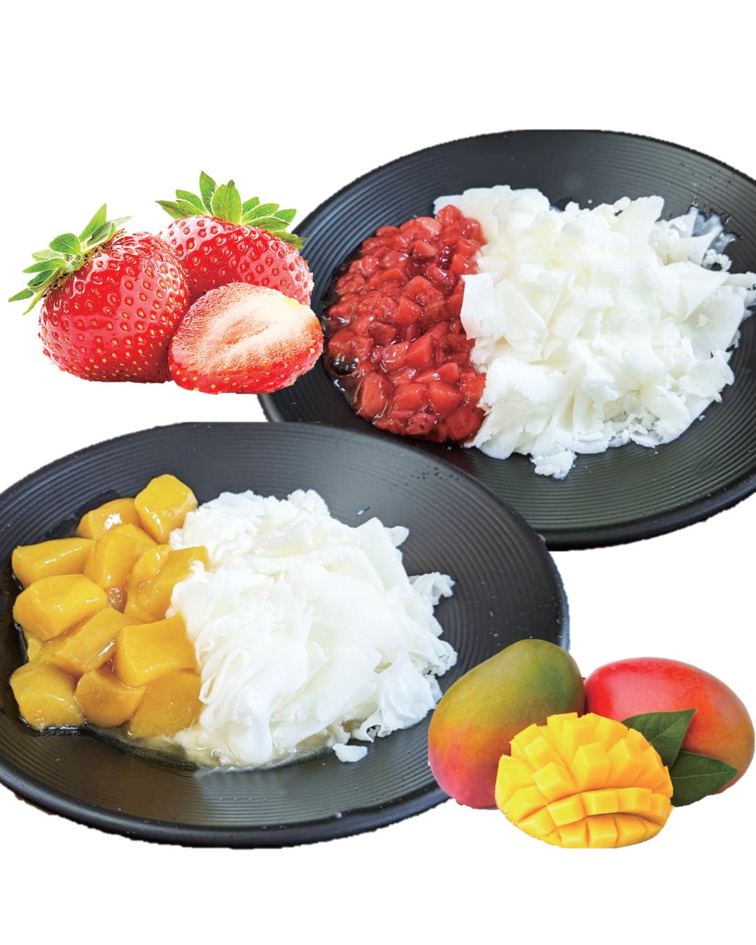 台湾発祥の人気デザート。日本のかき氷とはひと味違う、ふわっふわっ、そしてとろけるような食感が魅力の雪花冰。氷そのものに甘みや風味がついており、口に入れた瞬間、まるで雪のようにすっと溶けて広がります。トッピングには、濃厚でジューシーなマンゴーの果肉や、甘酸っぱいイチゴなどを贅沢に使用。