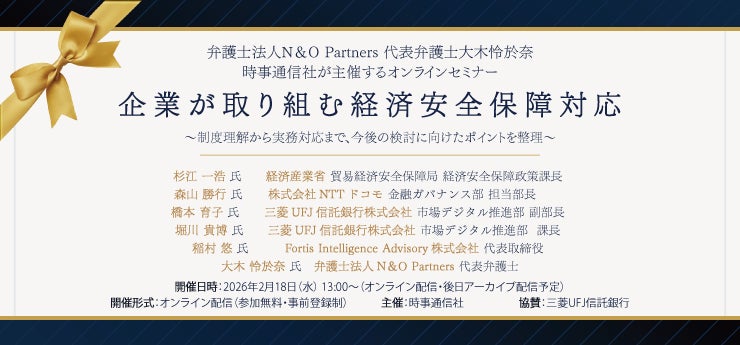 弁護士法人N&O Partners 代表弁護士・大木怜於奈が登壇/時事通信社主催「企業が取り組む経済安全保障対応」オンラインセミナー