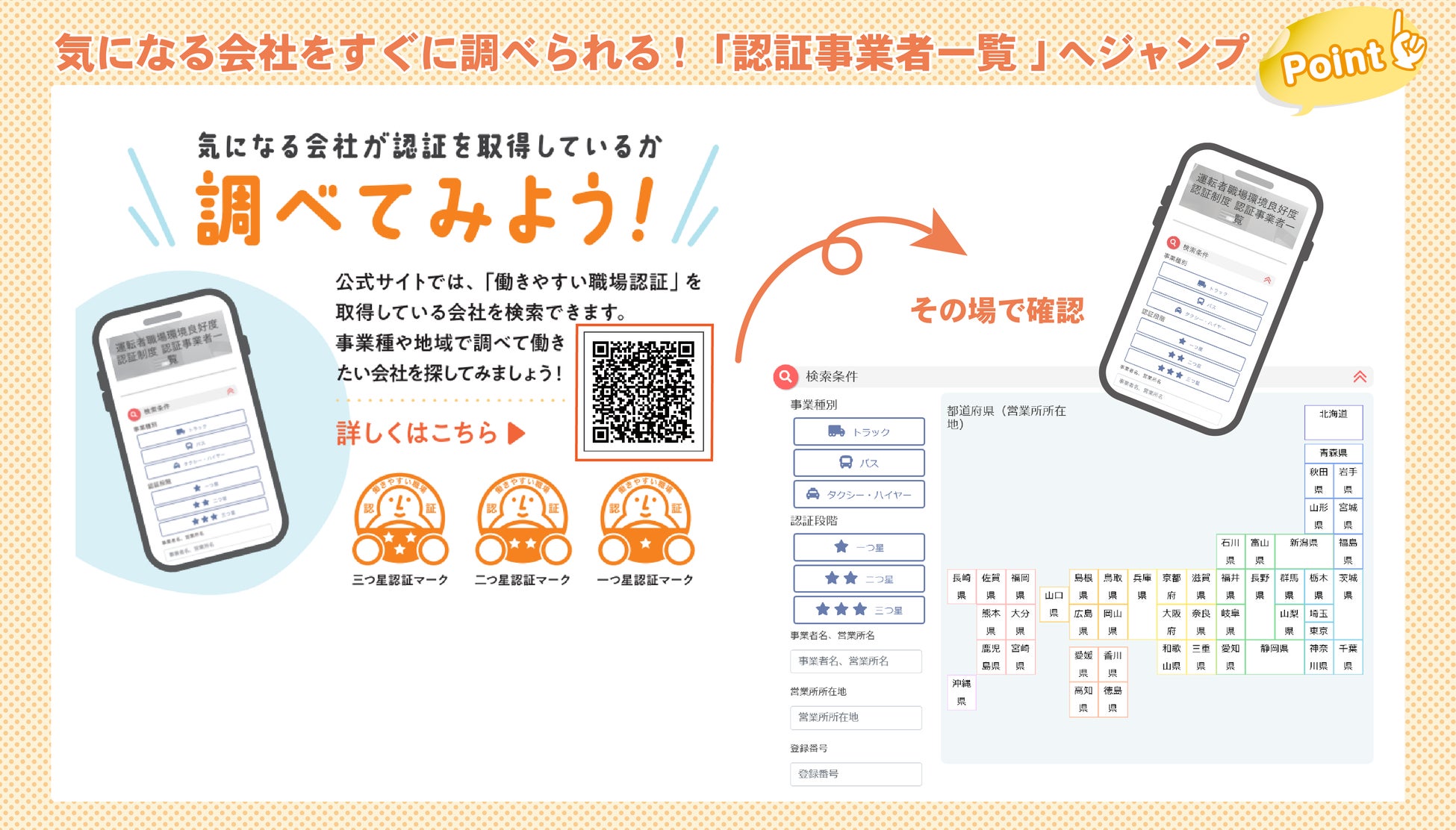 ▲「運転者職場環境良好度認証制度 認証事業者一覧」へジャンプすることができます。