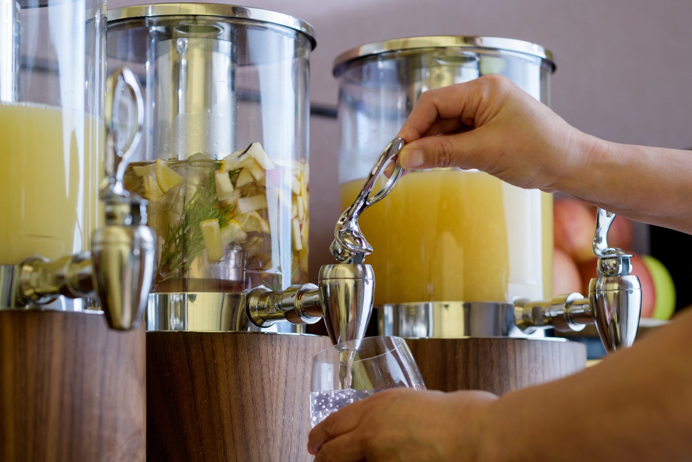 コーヒー 、デトックスウォーター、100%青森産リンゴジュースに加え、旅人のウエルネスライフを支援する目的で管理栄養士監修の朝の目覚めにふさわしい【青森りんご林檎ウエルネススムージー】が仲間入り!日替わりでご用意しております。