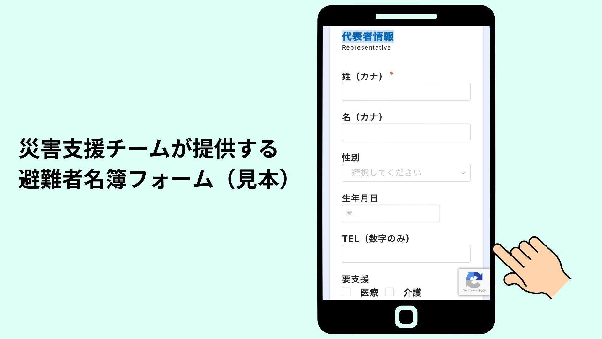 避難所開設の際に必要となる「避難者名簿」をデジタル化することで、避難所にいる人だけでなく、在宅避難者や二次避難所にいる人も含めた、あらゆる被災者の状況をリアルタイムで一元管理できます。私たちの調査で明らかになったように、高齢者でも簡単な操作で入力は可能です。