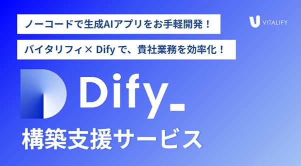 バイタリフィ、「Dify」の構築支援サービスを提供開始!ノーコードでの生成AIアプリ開発の導入を代行