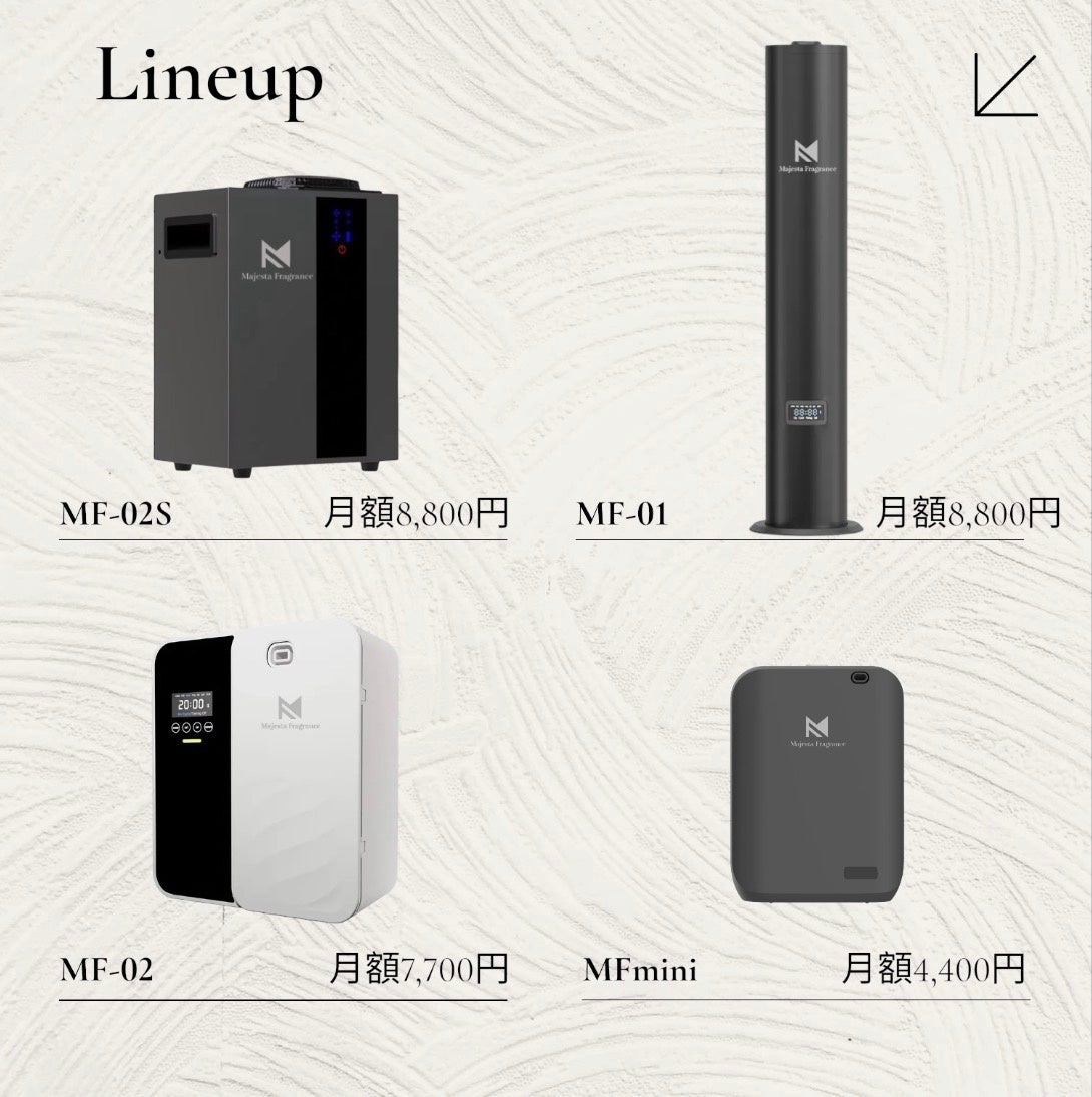 今回実施する「香り体験キャンペーン」では、マジェスタフレグランスの全4機種(MF-02S、MF-01、MF-02、MFmini)を対象に、1週間の無料お試し設置を実施。さらに継続導入をご希望の場合は、初月のレンタル料が無料となります。