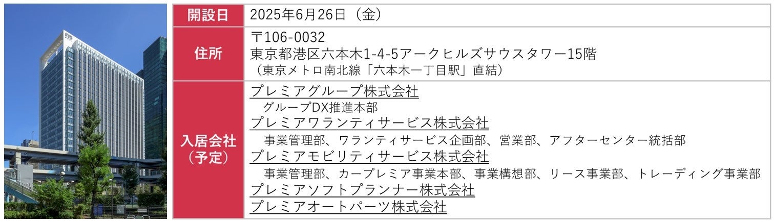 自動車に関する複合的なサービスを提供するオートモビリティ企業のプレミアグループ株式会社(本社:東京都港区、代表取締役社長:柴田洋一、以下「当社」)は、本部機能を有するオフィスとして、2025年6月26日付で新たに「東京本部」を開設することをお知らせいたします。