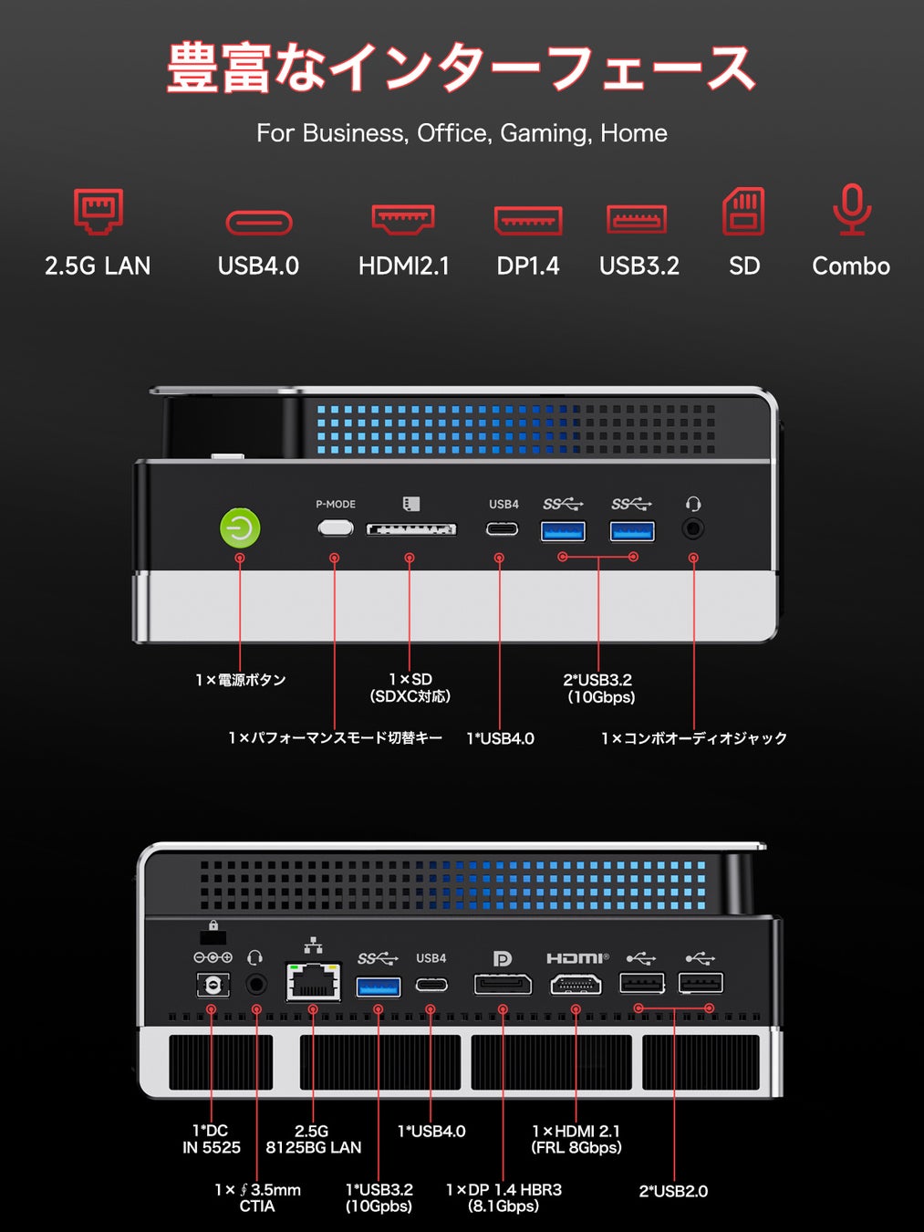 多くのユーザーが待ち望んでいた、この革新的なMINI PCは、Radeon 8060S Graphics GPU を搭載し、ゲームやクリエイティブな作業において、前例のないパフォーマンスを発揮します。