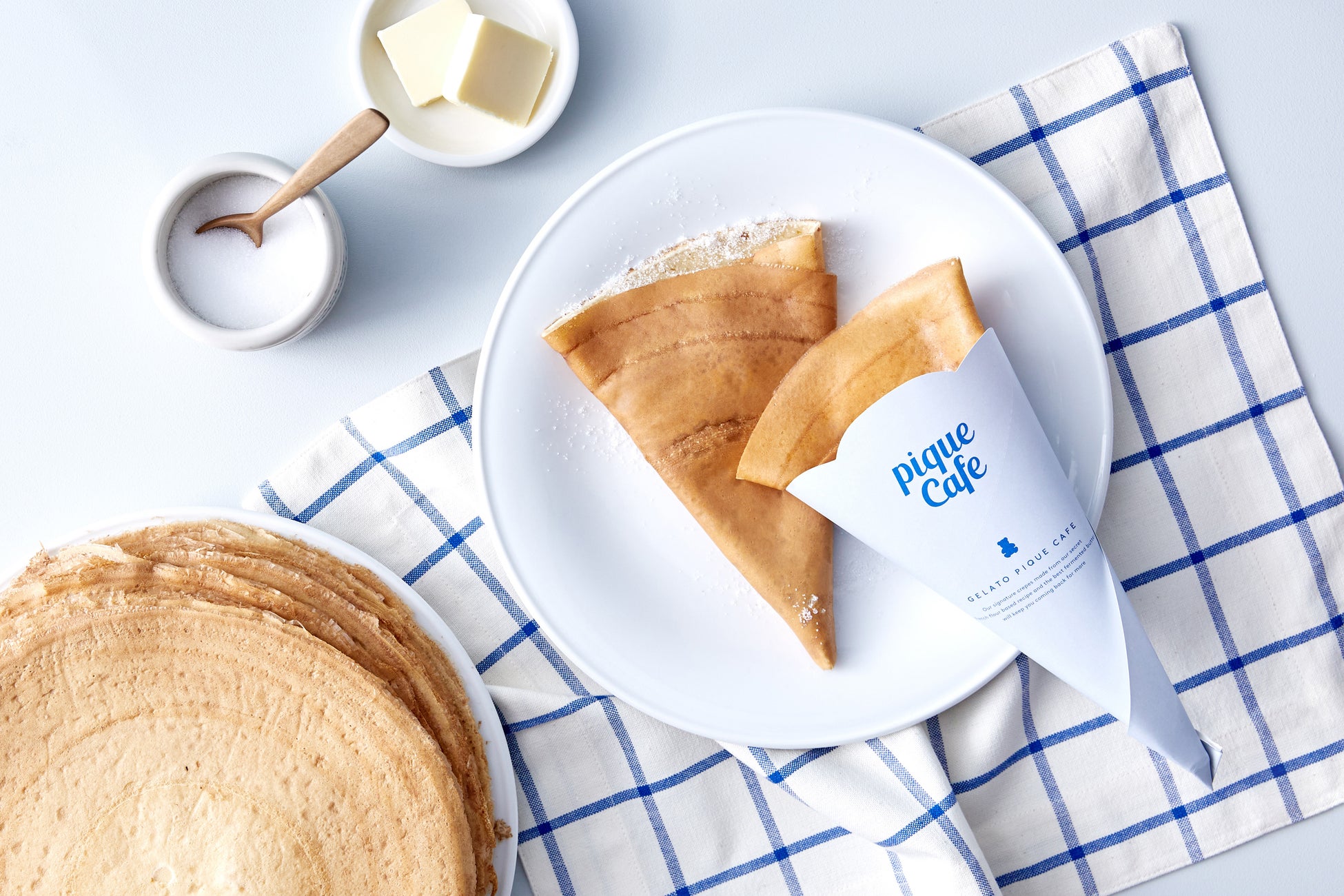 ピケカフェと「ザ・クレープ」のコラボスイーツ!今回は、ピケカフェの人気メニュー「バターとお砂糖のクレープ」をベースに、心やすらぐような食事「コンフォードフード」というピケカフェのコンセプトを商品に取り入れました。