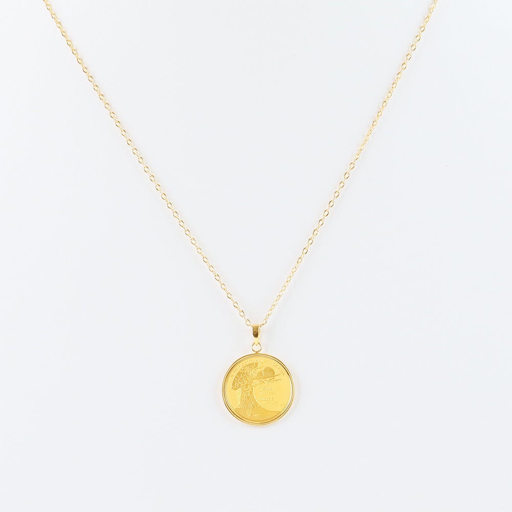 コインには18金(K18)製のフレームを採用し、ペンダントトップとして身に着けることが可能。