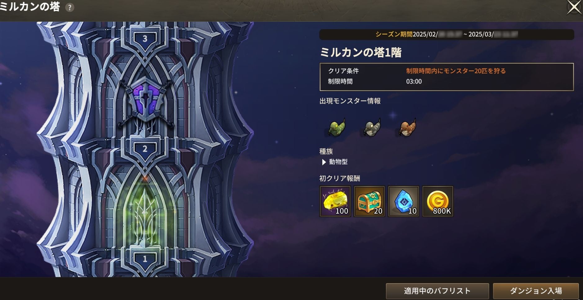 「ミルカンの塔」の詳細は、ゲームガイド「ミルカンの塔」をご確認ください。