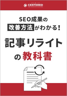 株式会社センタード(本社:東京都新宿区、代表取締役:平岡 悟、以下センタード)は、SEO対策における記事リライトの重要性と具体的な手法をまとめた資料『SEO成果の改善方法がわかる!記事リライトの教科書』を無料公開いたしました。
