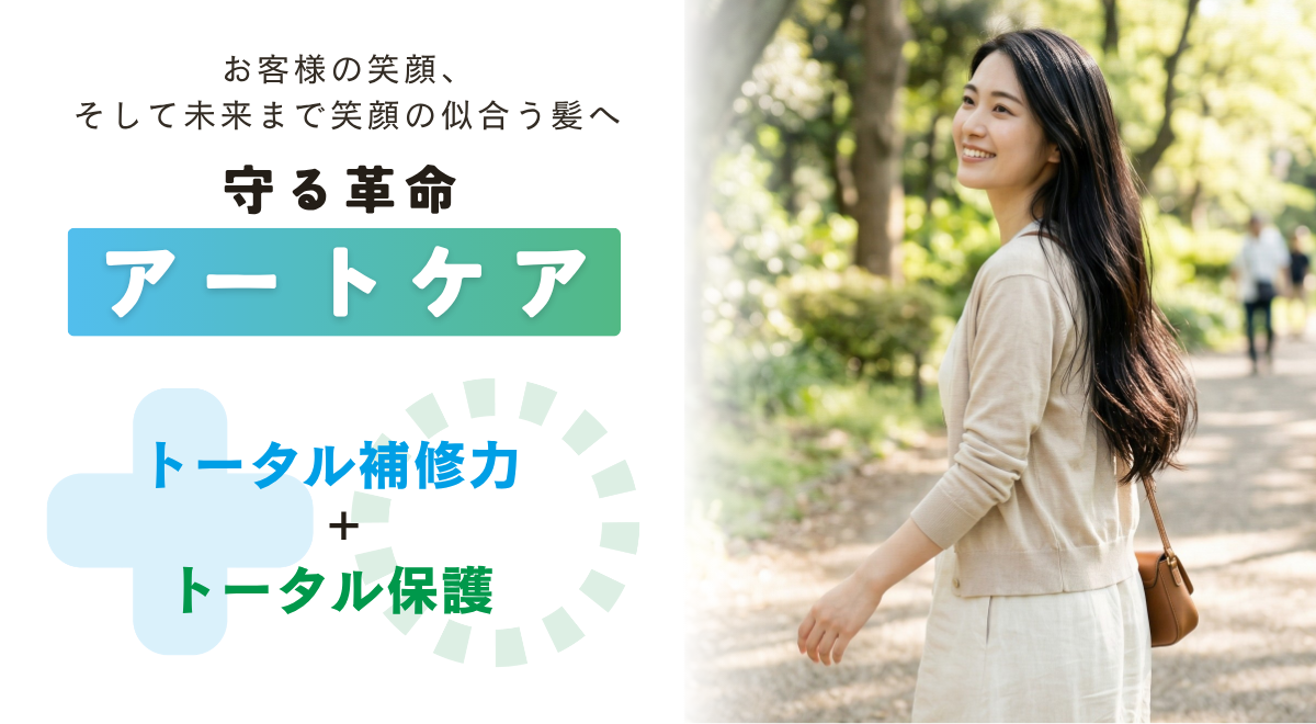 そこで辿り着いたのが、何によるダメージなのかが複雑で断定が難しいからこそ「トータル補修×トータル保護」という考えです。私たちはこの考え方を「アートケア」と呼んでいます。それは単なるヘアケアではなく、理美容師様の努力を、お客様の笑顔へつなぎ、そしてその先の未来まで守る革命です。