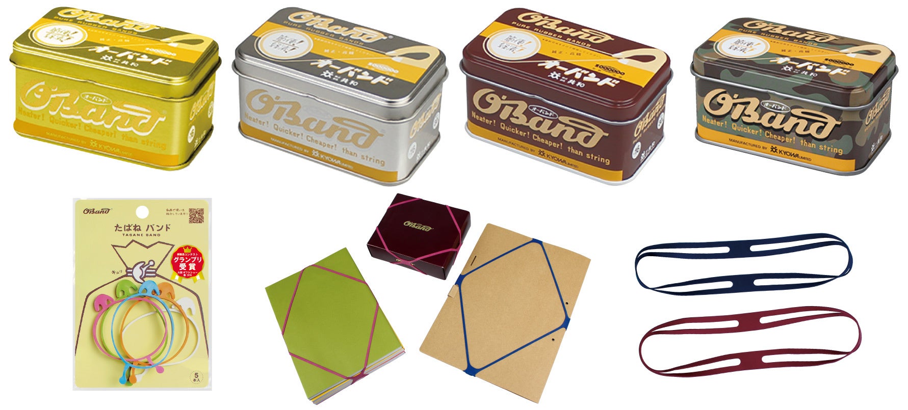 「オーバンド」は、開発から108年、商標登録から72年続く、輪ゴムのロングセラーブランドです。茶色と黄色のパッケージでおなじみの「オーバンド」は、文具店・スーパー・学校・オフィス・家庭など、あらゆる場面で活躍しています。