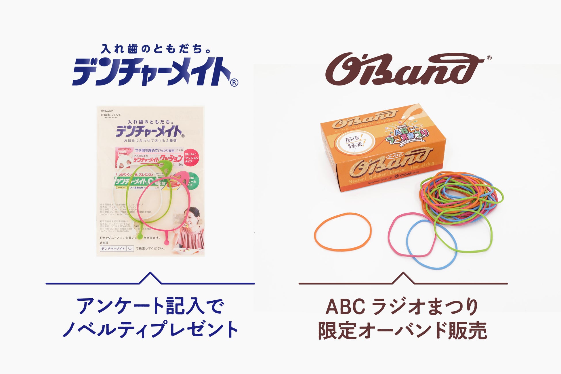 知っていた?入れ歯安定剤の「デンチャーメイト」と輪ゴムの「オーバンド」の意外な関係。初コラボで11月9日(日)開催のABCラジオまつり2025に出店!限定「オーバンド」の販売、輪ゴム銃体験などを開催。