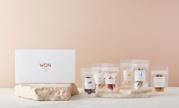 WONは愛犬に「好き」や「感謝」を伝える最高のごほうび体験を提供することを目指す、スペシャリティドッグトリーツ(犬用おやつ)のブランドです。最高級のヒューマングレードの食材を使い、手作り製法にこだわった、安心安全でとびきり美味しいおやつを提供しています。