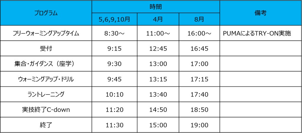 今年4月に日産スタジアムで開催した第1回では、“スピードを上げて走ることに慣れる”ためのレッスンを実施。今回は<乳酸活用能力強化>をテーマに、きつい中でもペースを維持できるようになるレッスンを実施しました。