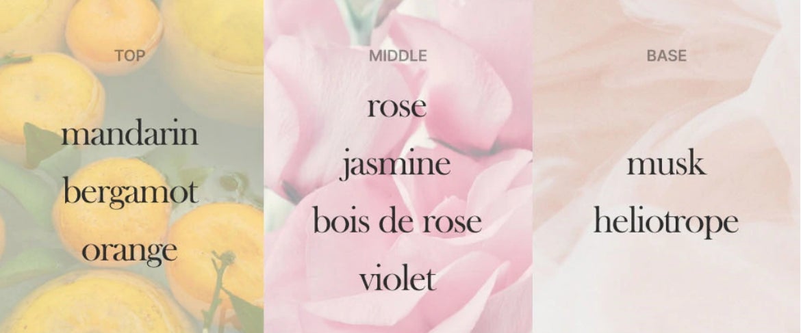 花びらに染み込んだシトラス、さわやかなピンクフローラルの香り、 さわやかなマンダリンが伝える清涼感、ローズが残す優雅さ、そしてムスクが包み込む暖かい余韻。 まるで花びらがささやくように、甘美な香りが深く染み込み、あなたの日常にリフレッシュを与えます。