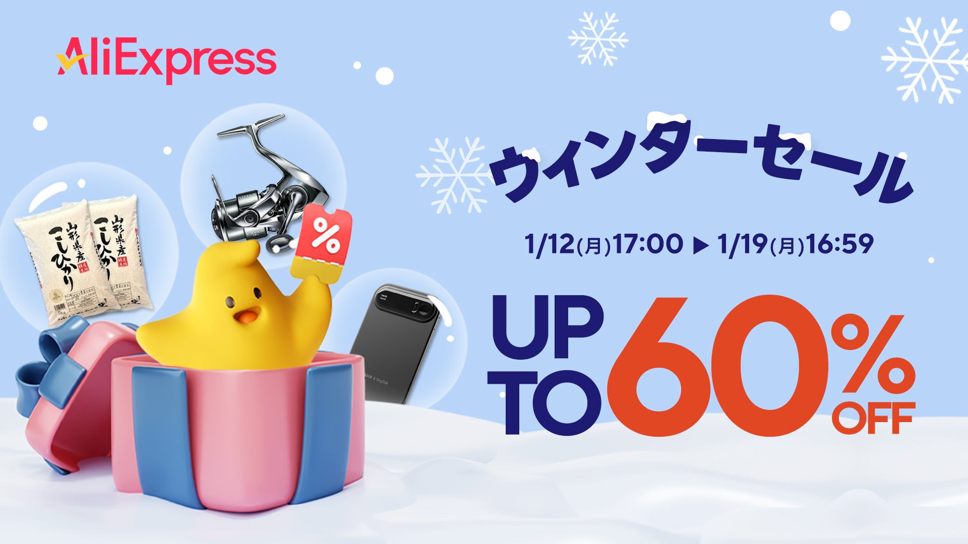 AliExpressでは、スマートフォン、3Cデジタル、生活家電、アウトドア・スポーツ、食品など幅広いカテゴリーを対象に、期間中最大60%OFFの「ウィンターセール」を実施し、日本のユーザーにおける新年のまとめ買いへの需要に応えます。