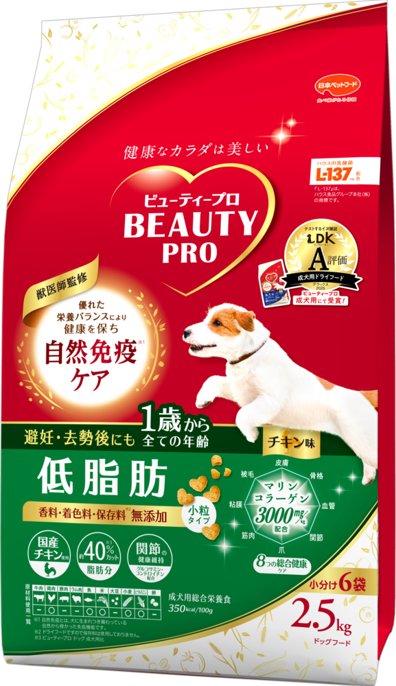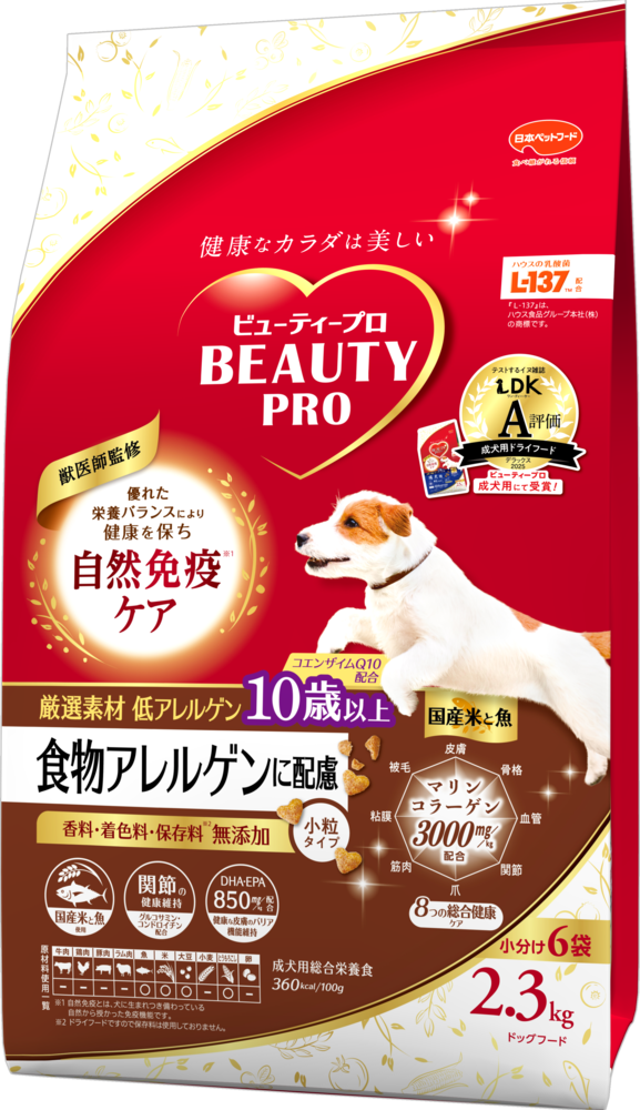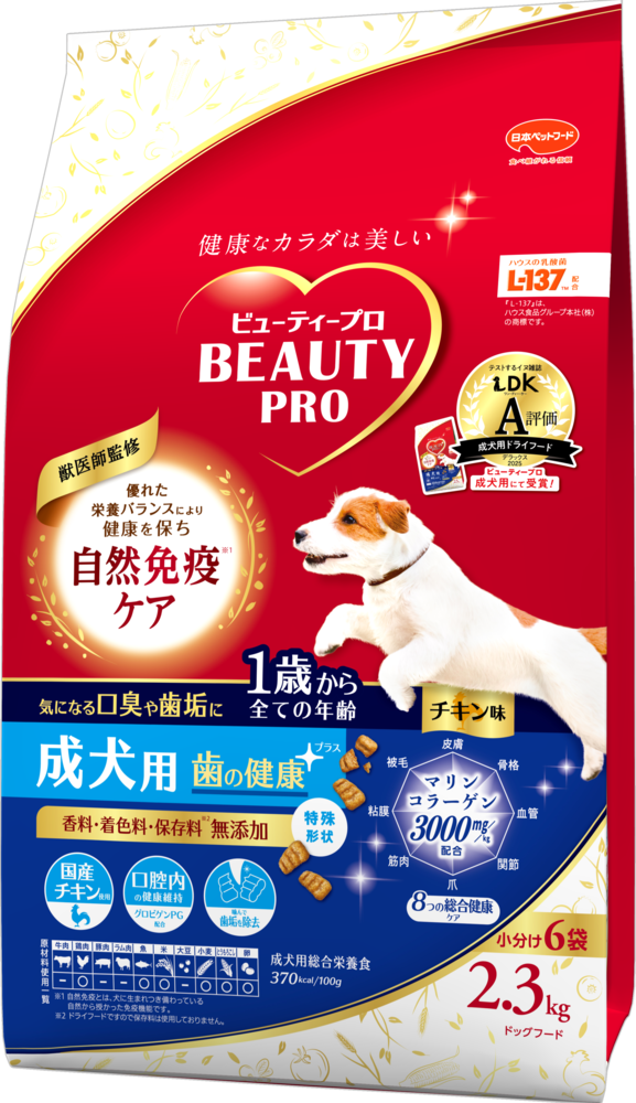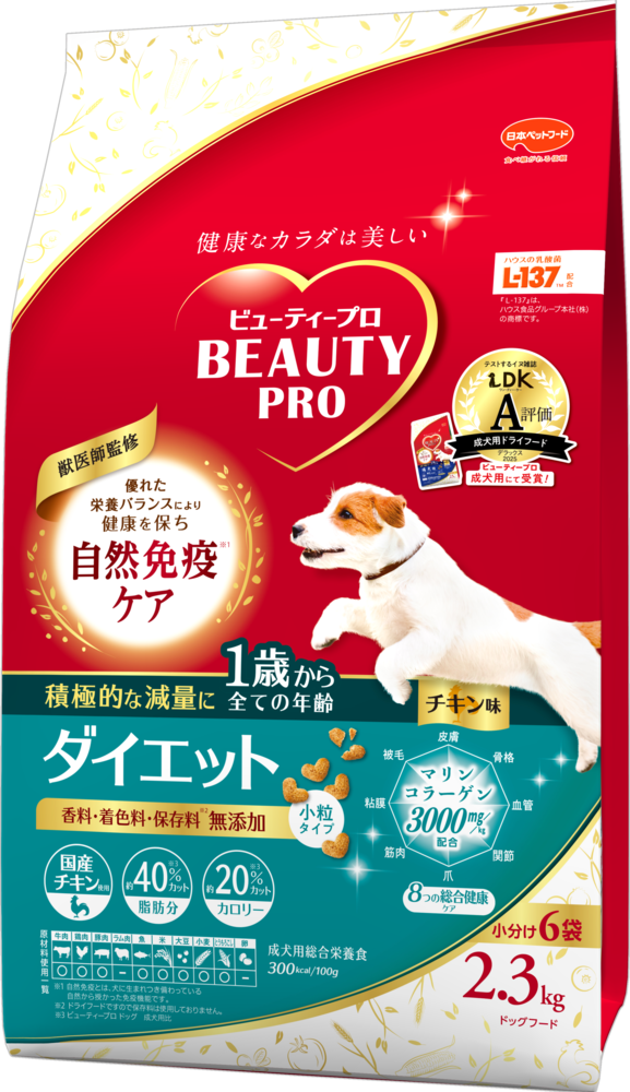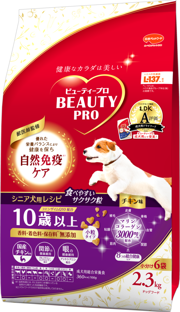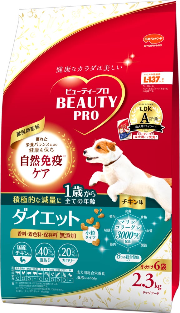雑誌「LDK」の犬版『ワンDKデラックス2025 わんこに良いものBEST』で、「ビューティープロ ドッグ 成犬用 1歳から」が 成犬用ドライフード部門でA評価を受賞しました。