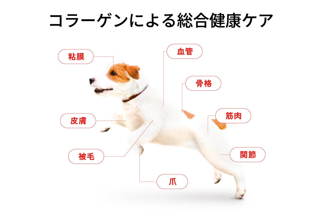 コラーゲンは、犬のあらゆる部位を構成する重要なたんぱく質。細胞や組織を支える役割を担っています。