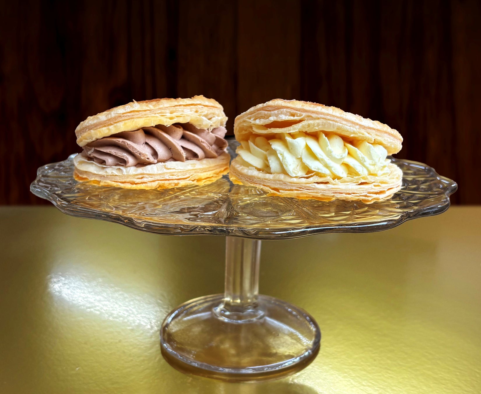 たっぷりのカスタードクリーム、チョコレートクリームをそれぞれサンドしました。