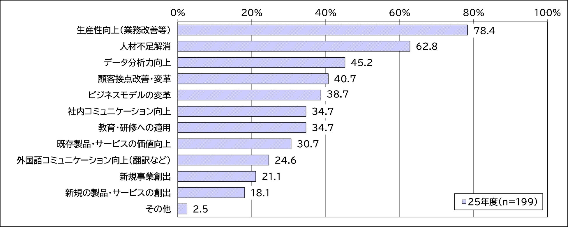 ■生成AIは「実証」から「定着」へ。大企業の8割超が導入し、用途は急速に多様化