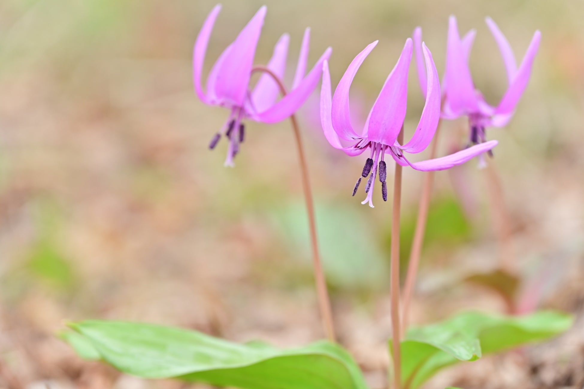 4月下旬から5月上旬にかけて、カタクリの紅紫色の花が一面に咲き広がり、春の森をやさしく染め上げます。オープン直後のゴールデンウィーク期間中が見頃の予想です。